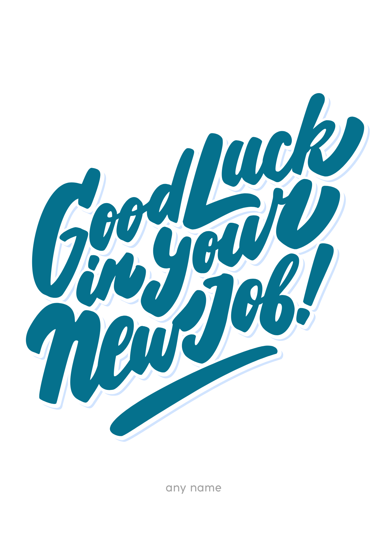 This eye catching design showcases dynamic blue brush lettering that reads good luck in your new job giving the card a confident energetic feel.