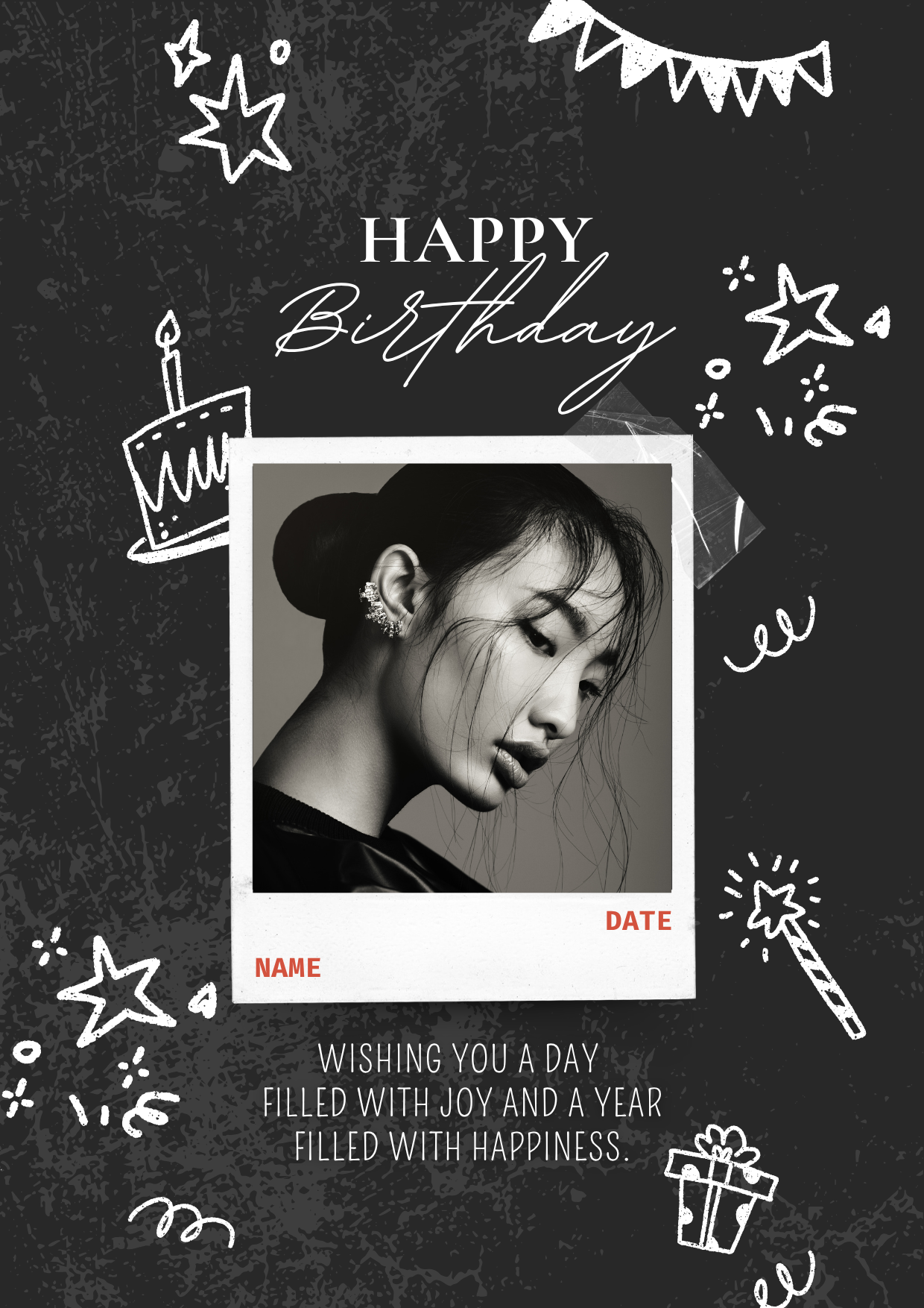 This black-and-white photo card combines modern style with a personal touch — ideal for birthdays with a sleek, minimalist vibe.