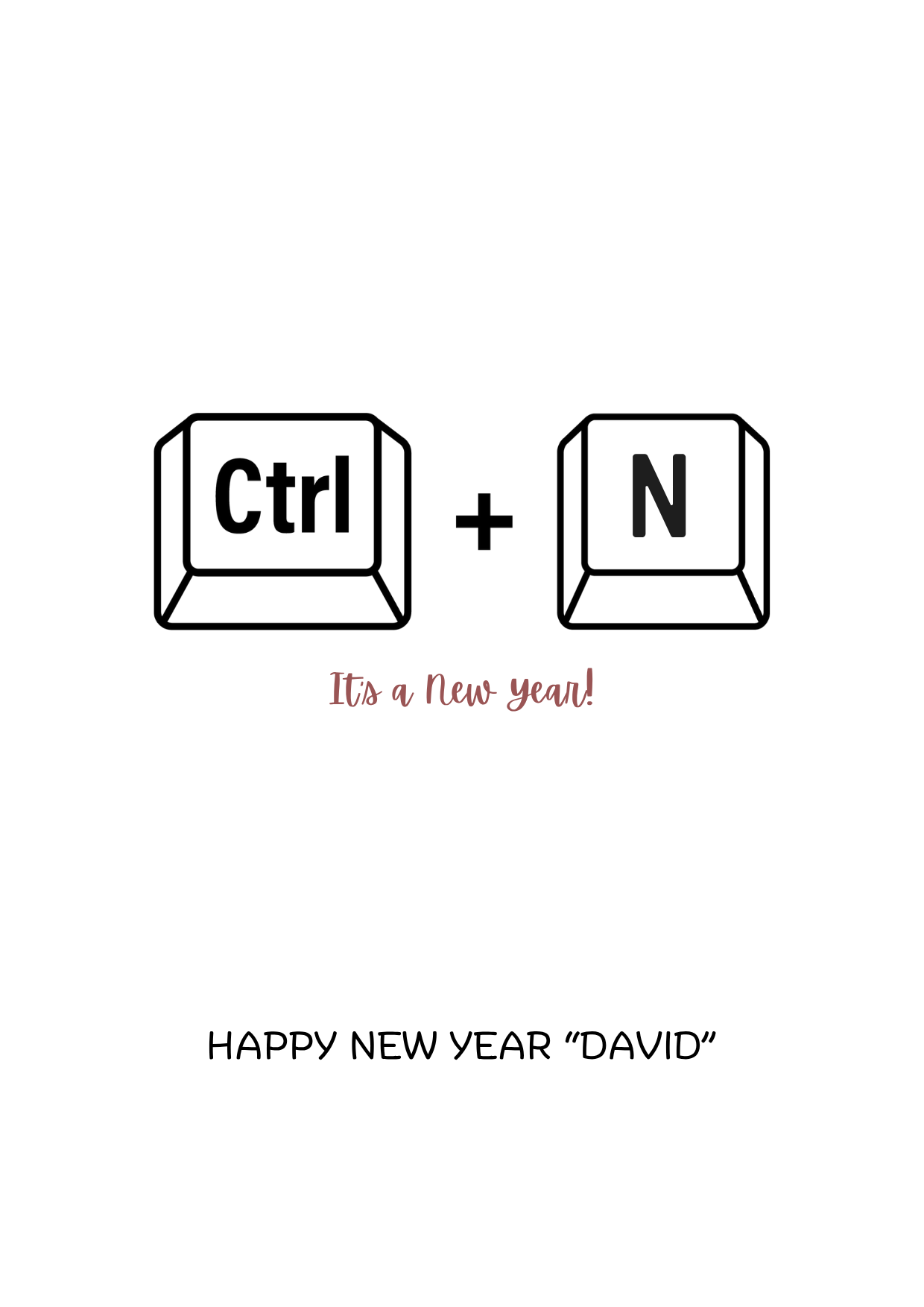 A clever computer themed New Year card inspired by the classic keyboard shortcut for creating something new.