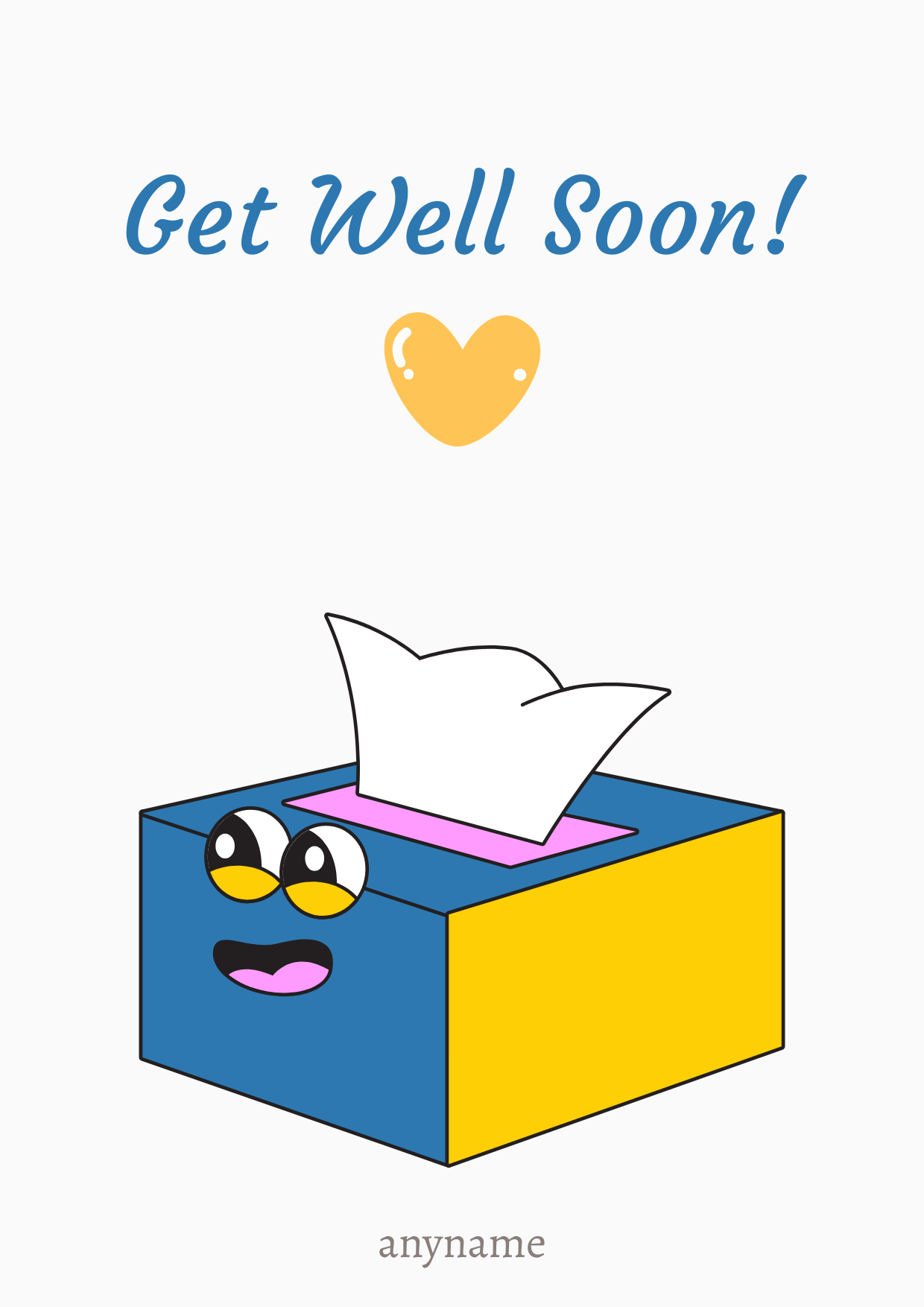 A fun illustrated tissue box character sending cheerful get well wishes.