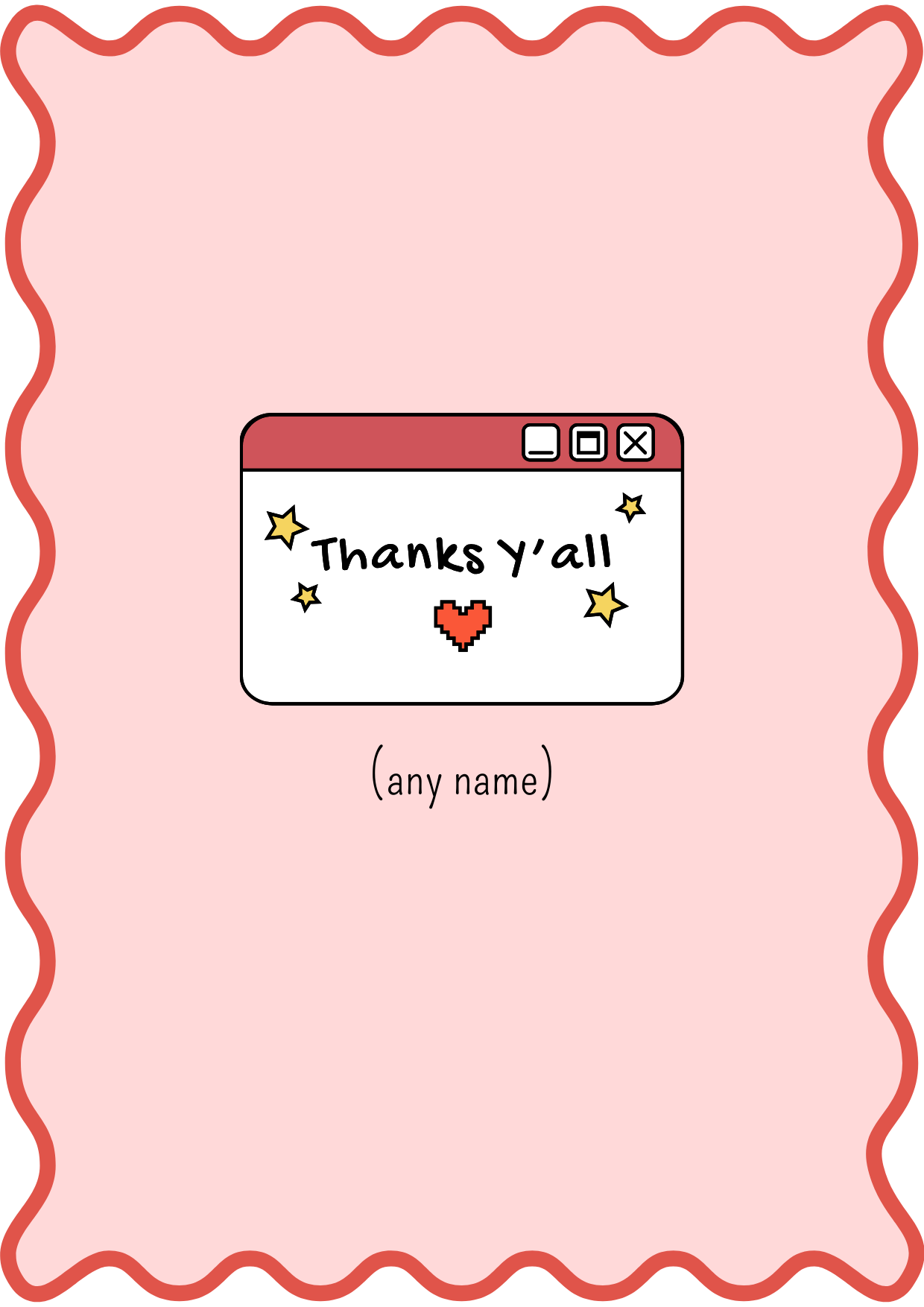 This design brings a modern twist to gratitude featuring a soft pink background surrounded by a wavy frame. At the center sits a digital message box decorated with tiny flowers hearts and the words thanks yall. Its charming simple style makes it great for thanking groups teams or individuals in a fun contemporary way.