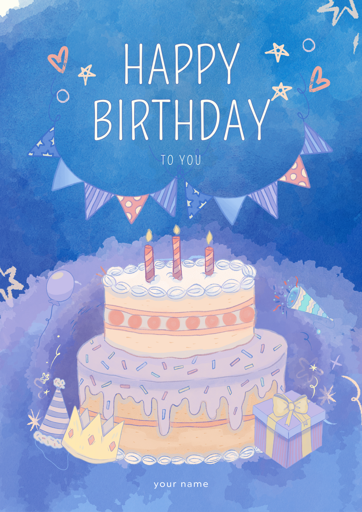 A bright and festive card featuring a classic cake and candles, perfect for celebrating your lovely friend!