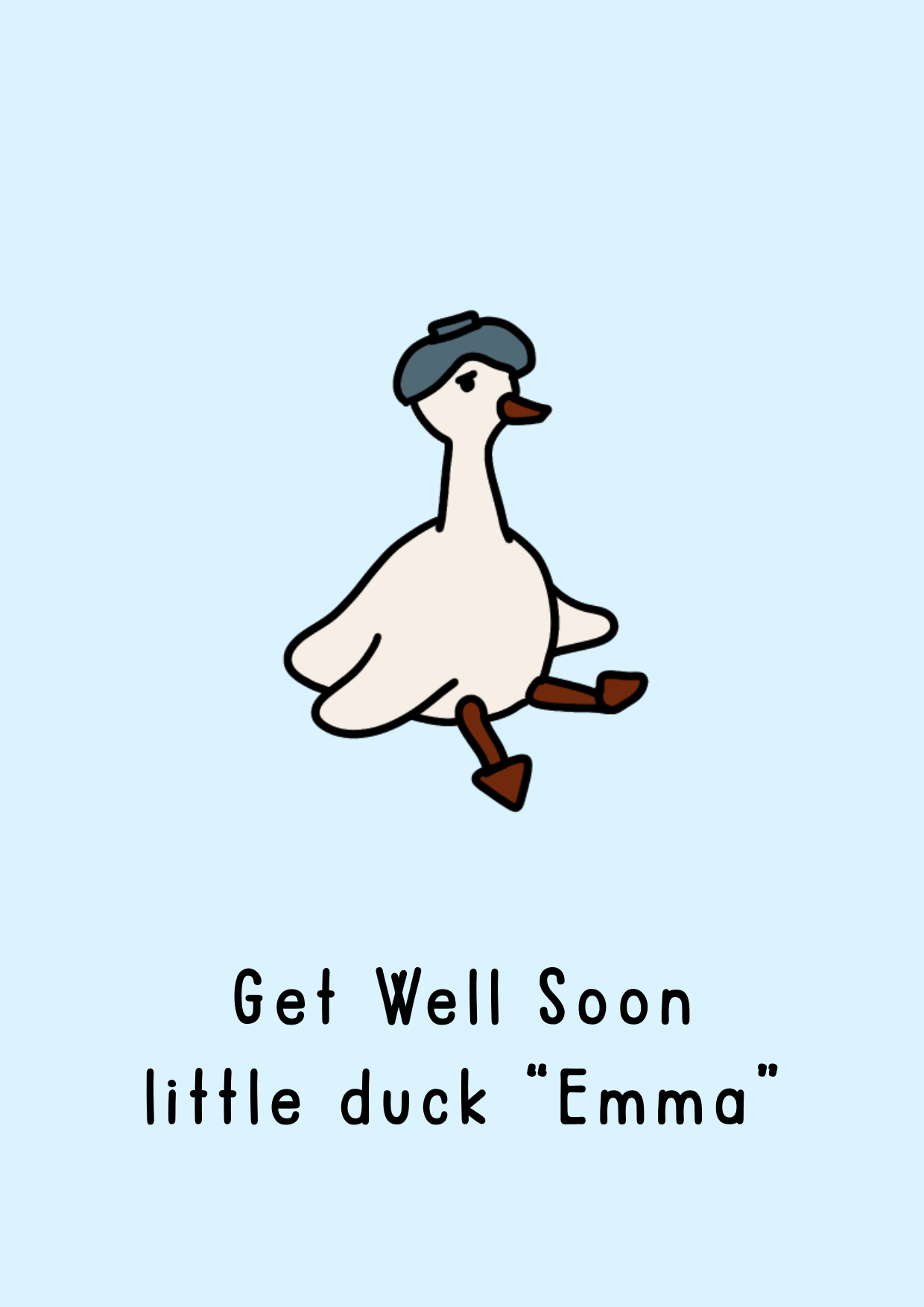 A sweet lighthearted get well card featuring an adorable little duck illustration.