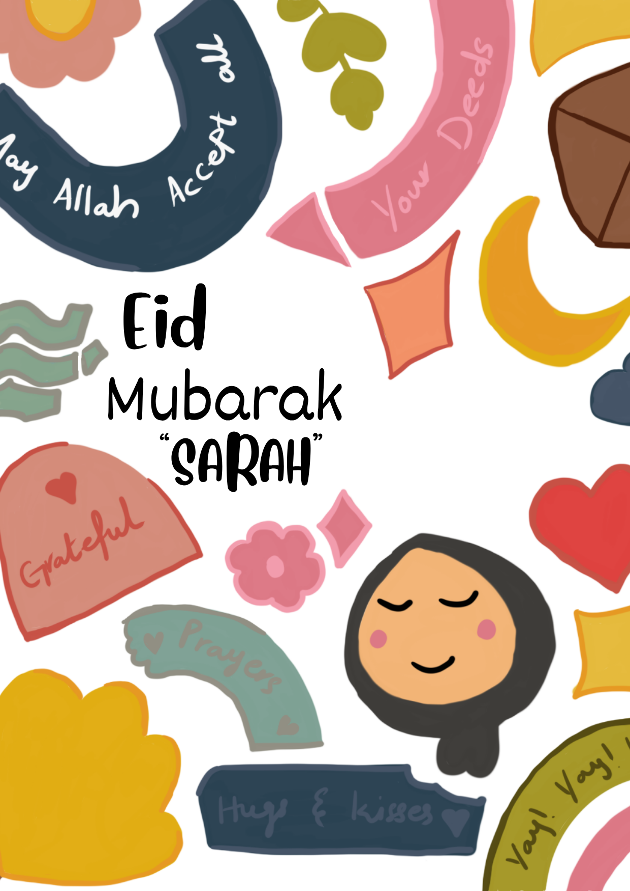 A fun illustrated Eid card full of colour and personality.