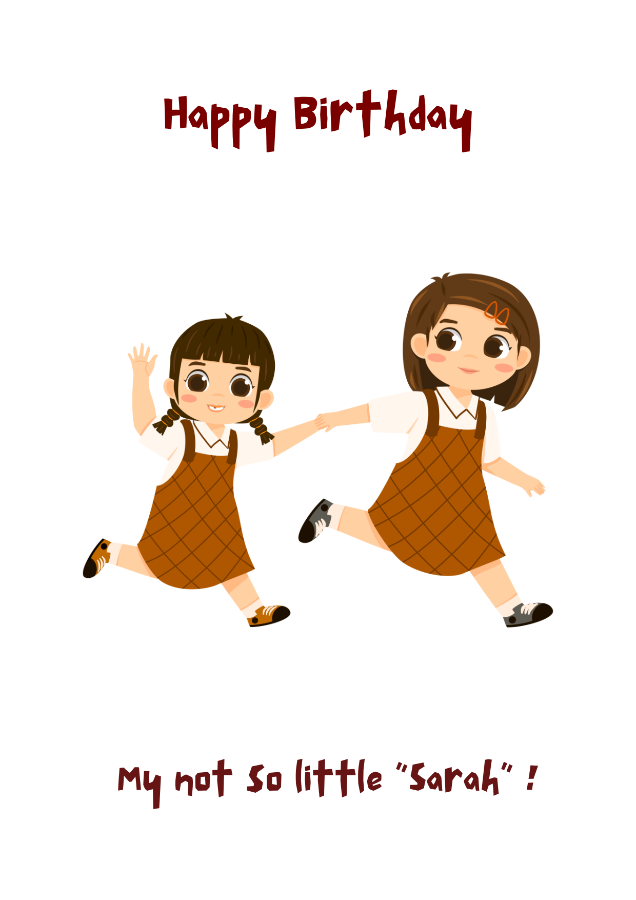 Celebrate your sister’s birthday with this adorable “Not-so-little sister” card featuring two dancing girls full of joy and energy.