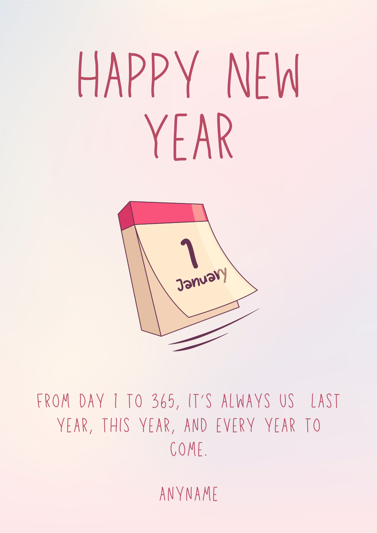 This clean minimal design represents new beginnings with a softly coloured calendar page marked for the first day of the year.