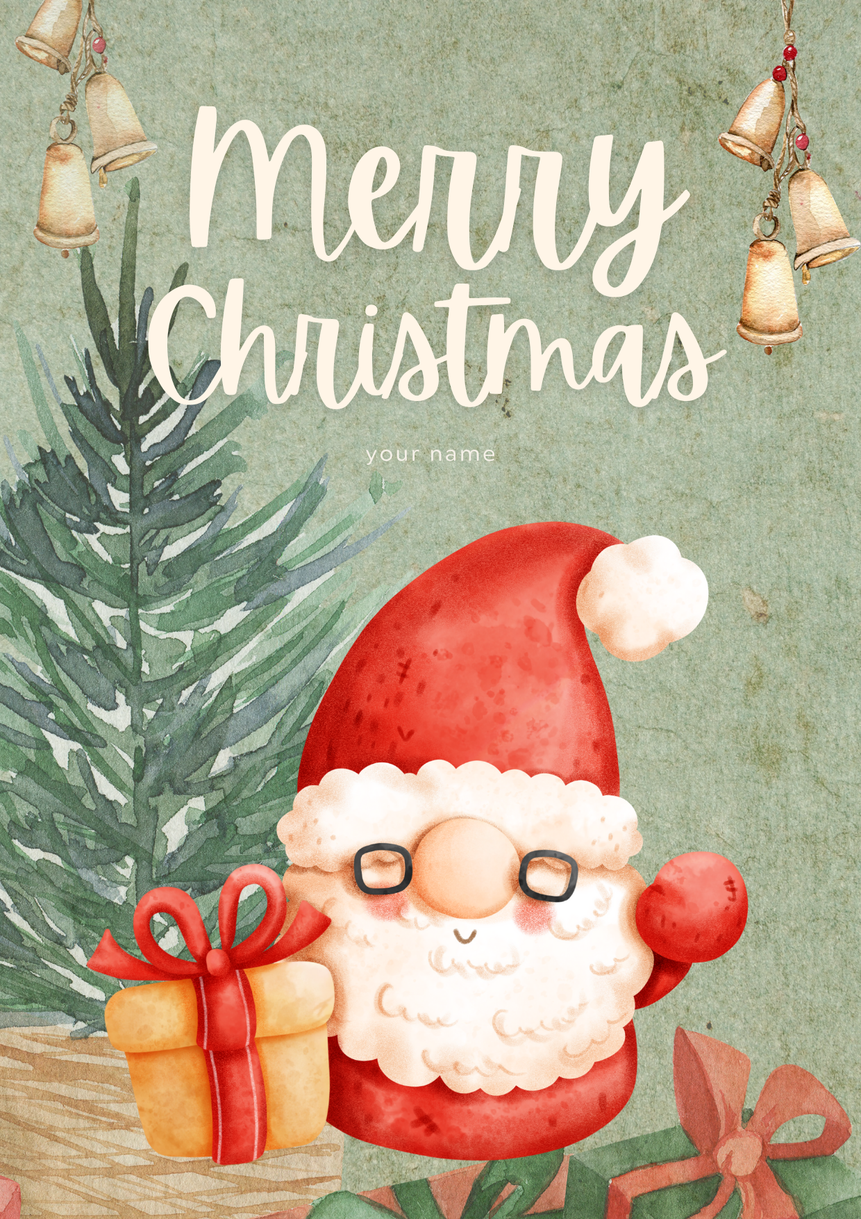 A cosy rustic Christmas card featuring a charming illustrated Santa.