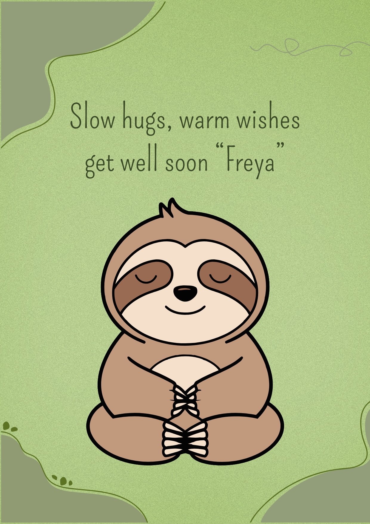 A cute and comforting get well card with an adorable sloth sending slow warm hugs.